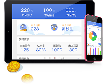 移動端數(shù)據(jù)分析,隨時查看餐廳實時數(shù)據(jù)、經營情況、提高管理效率