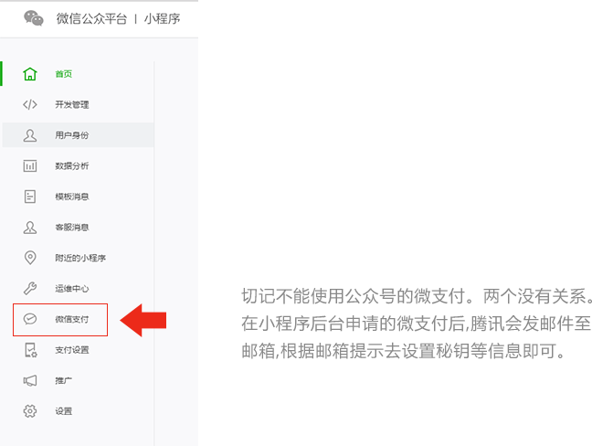 微支付查看下小程序微支付是否是在騰訊小程序后臺(tái)申請(qǐng)的.如下圖: