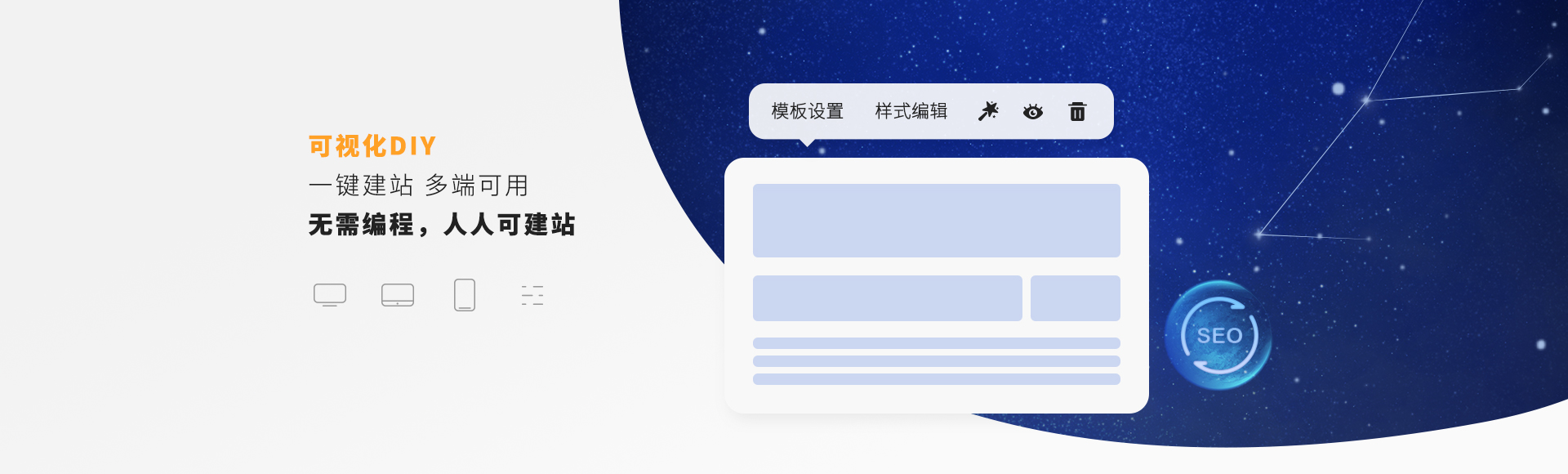 傻瓜式操作,適配多平臺(tái)極速建站,模板豐富,功能
